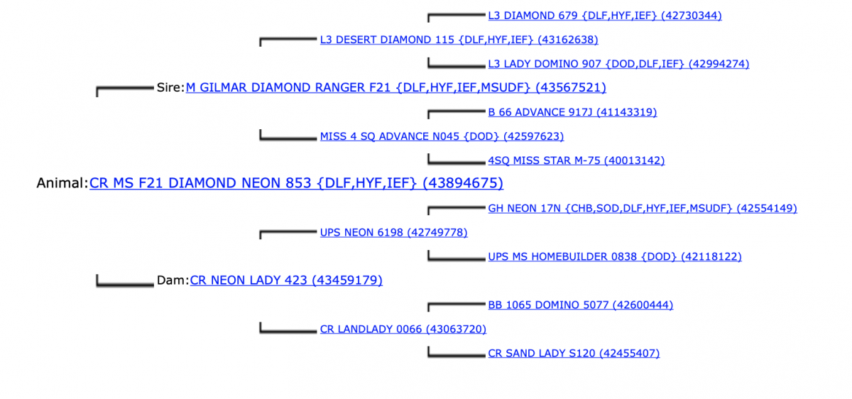 This bred Case Ranch heifer was exposed to B&C SENSATION 6088D ET(43787812) &
